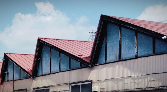 織物工場の特徴的な三角屋根(のこぎり屋根)