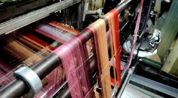昭和初期創業の機屋で、ネクタイや袴の生地などを手がけてきた歴史を持ち、今もジャガード織機やドビー織機を用いてこだわりの織物づくりを続けている「岡村織物(有)」。
