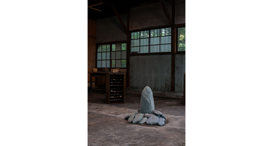 徳島で取り組んだ《預かり、還す──日本の布の起源》と、現在制作中の《衣服を石のように染め固めた作品》を展示します。大麻や楮といった日本の地(土)から生まれた繊維は、古代より布として人々の暮らしを支えてきました。その営みを見つめ直す《預かり、還す》は、大地からモノが生まれることを象徴しています。